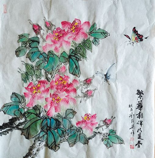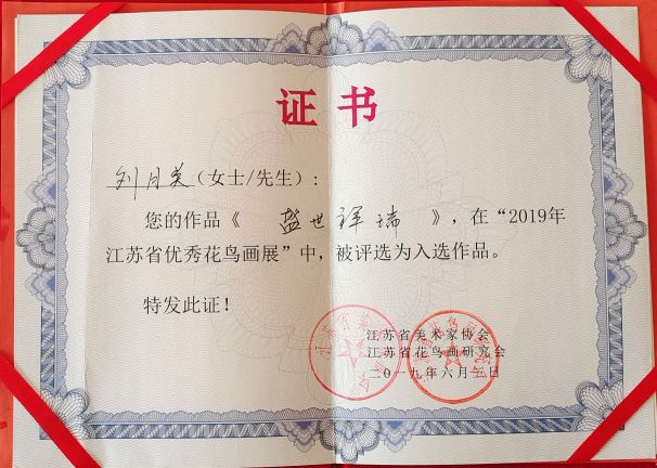 花鸟画家 刘月英:女,1952年出生。从小爱好绘画,喜欢中国的传统文化,国画和京剧。在国画方面,多次参加省市级的各种画展,2012年出版个人画集。有考国画拾级证书和各种参展证书。作品被国内外友人收藏,获得一致好评!她还爱好京剧,喜欢京剧老旦高昂,激情的唱腔。2011年到北京拜德艺双馨的老旦名家赵葆秀老师为师。向江苏省京剧院挑梁老旦董源老师学习。她们亦师亦友受益匪浅。曾饰演过多次传统戏和现代戏。饰演过多个鲜活的角色,是优秀的票友。现为江苏省花鸟研究会会员,南京市美协会员,市花鸟研究会会员,金陵十姐妹,苏新画院副秘书长。